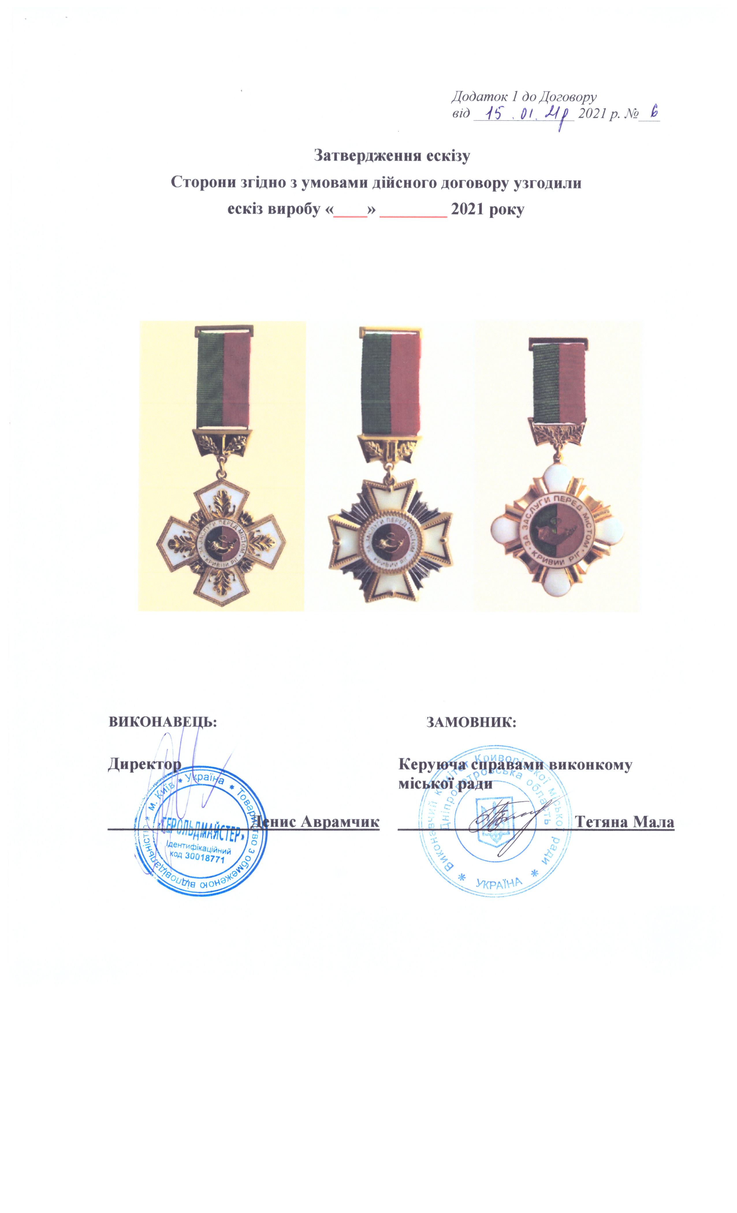 Додаток 1 до договору на виготовлення нагрудних знаків №6 від 15.01.2021