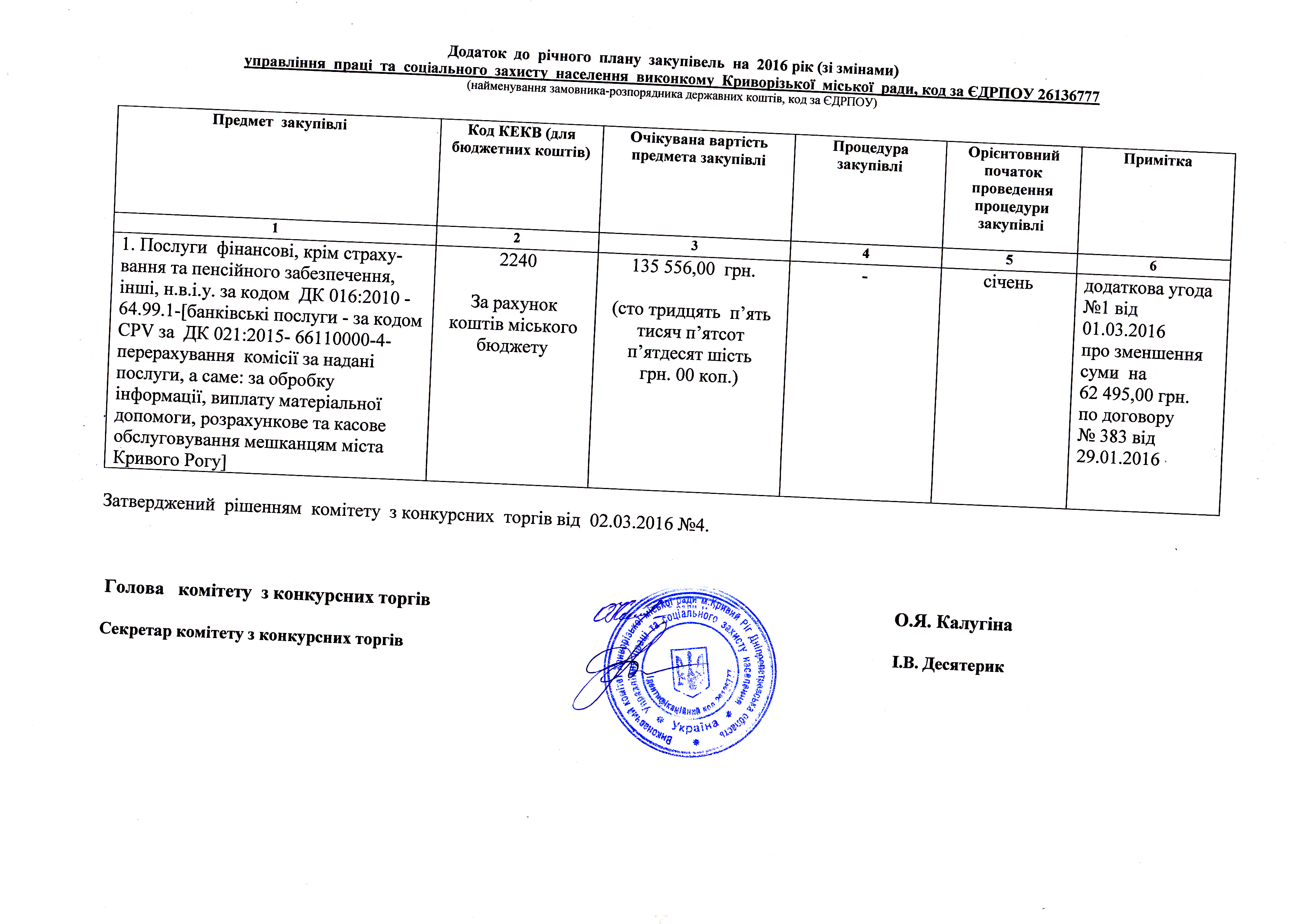 Перелік договорів, які укладено управлінням комунальної власності міста виконкому міської ради в 2016 році