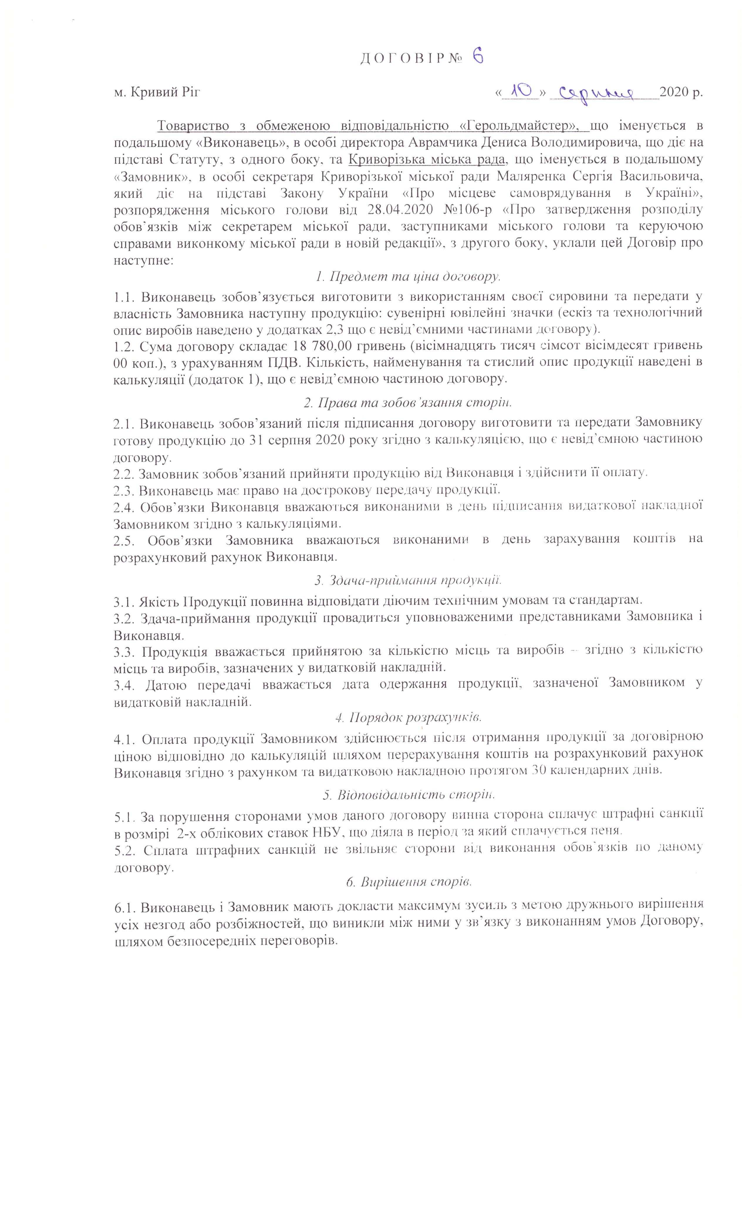 Договір №6 від 10.08.2020