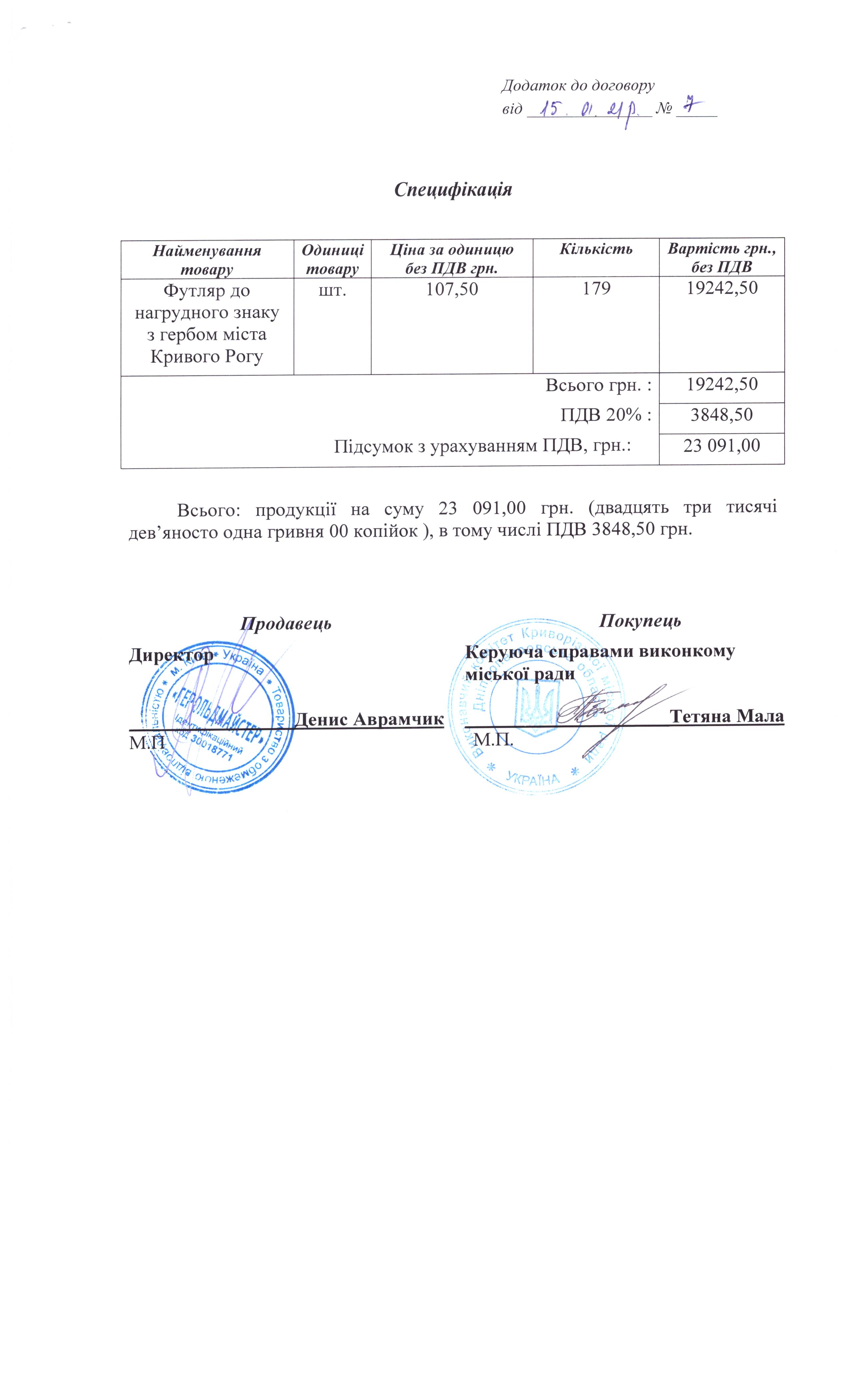 Додаток до договору закупівлі футлярів №7 від 15.01.2021