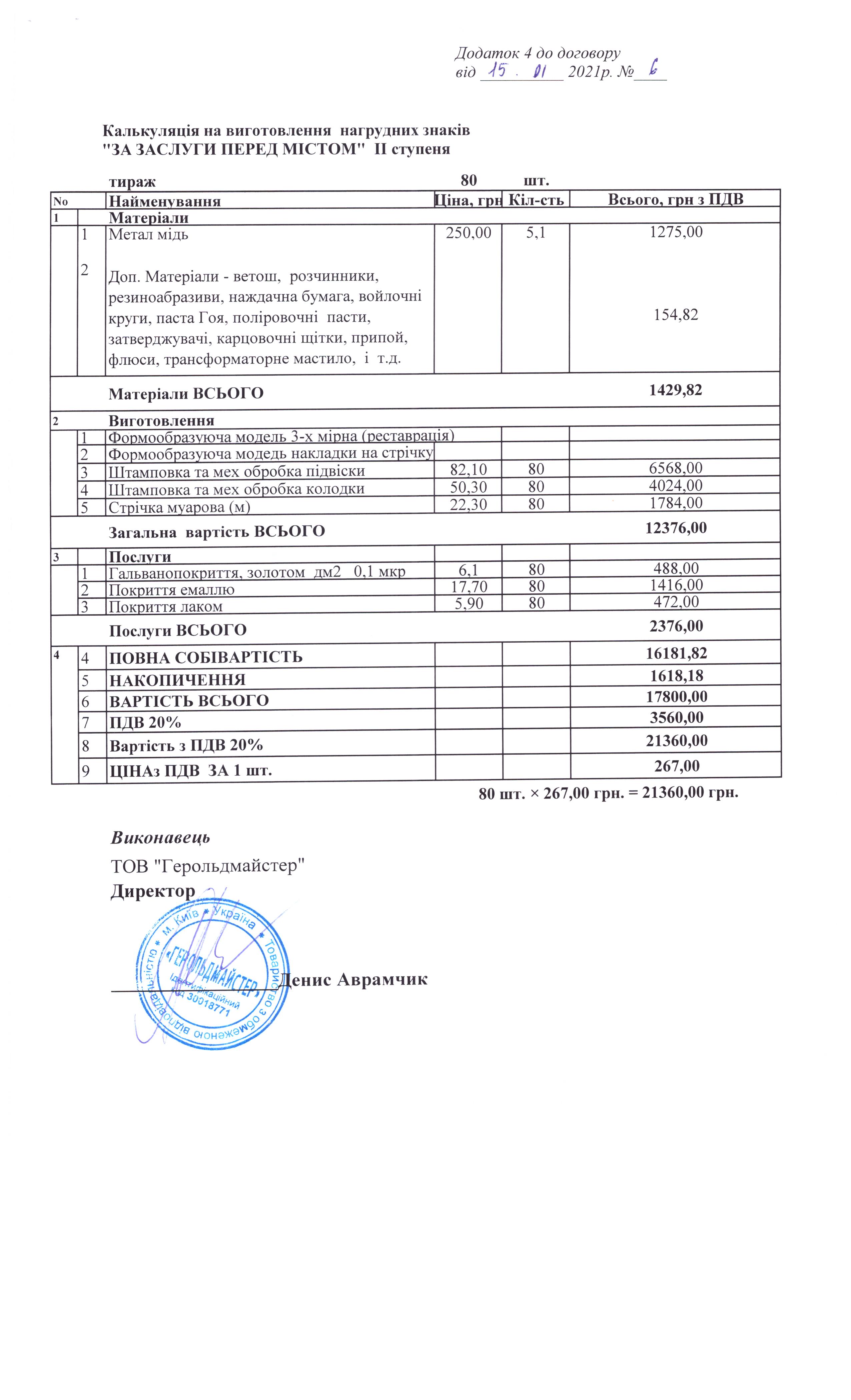 Додаток 4 до договору на виготовлення нагрудних знаків №6 від 15.01.2021