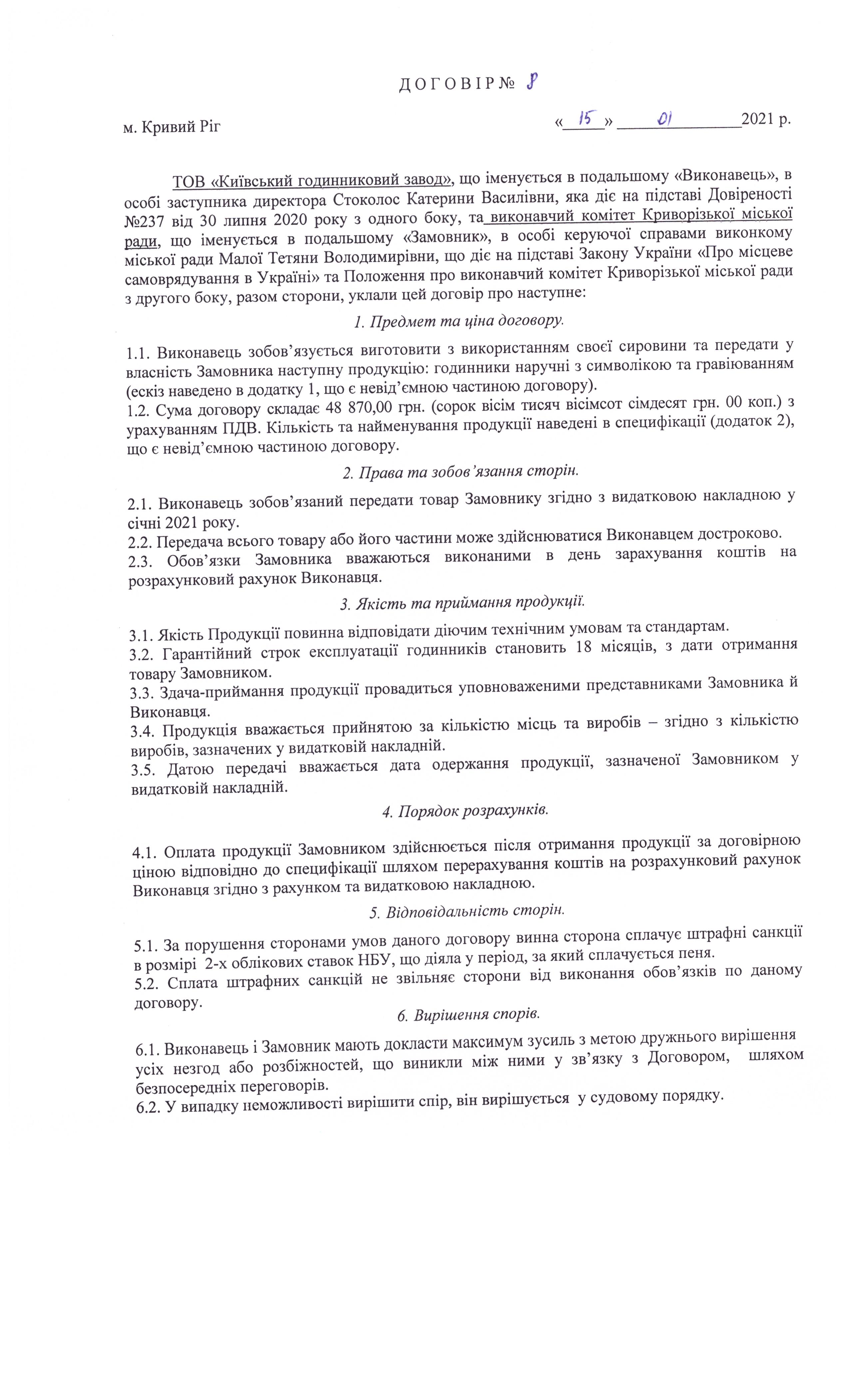 Договір виготовлення годинників №8 від 15.01.2021 стор.2