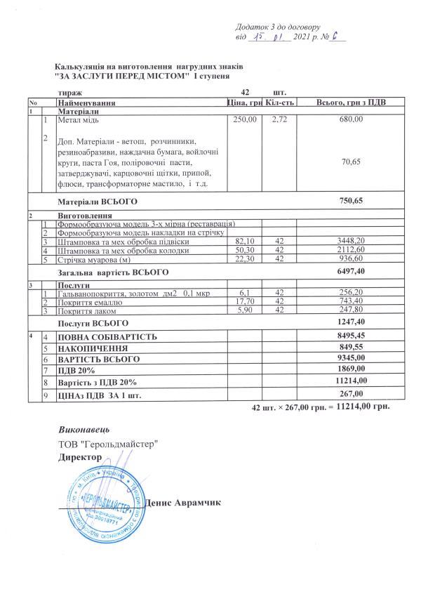 Додаток 3 до договору на виготовлення нагрудних знаків №6 від 15.01.2021