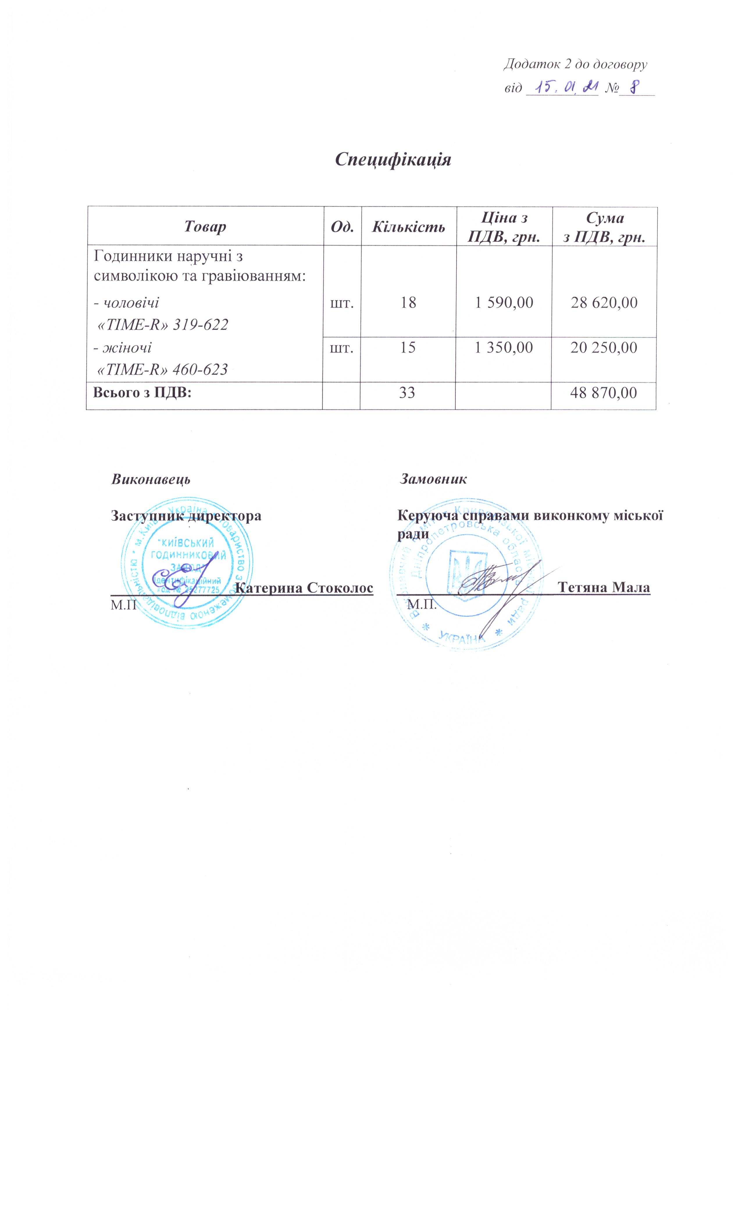 Додаток 2 до договору виготовлення годинників №8 від 15.01.2021