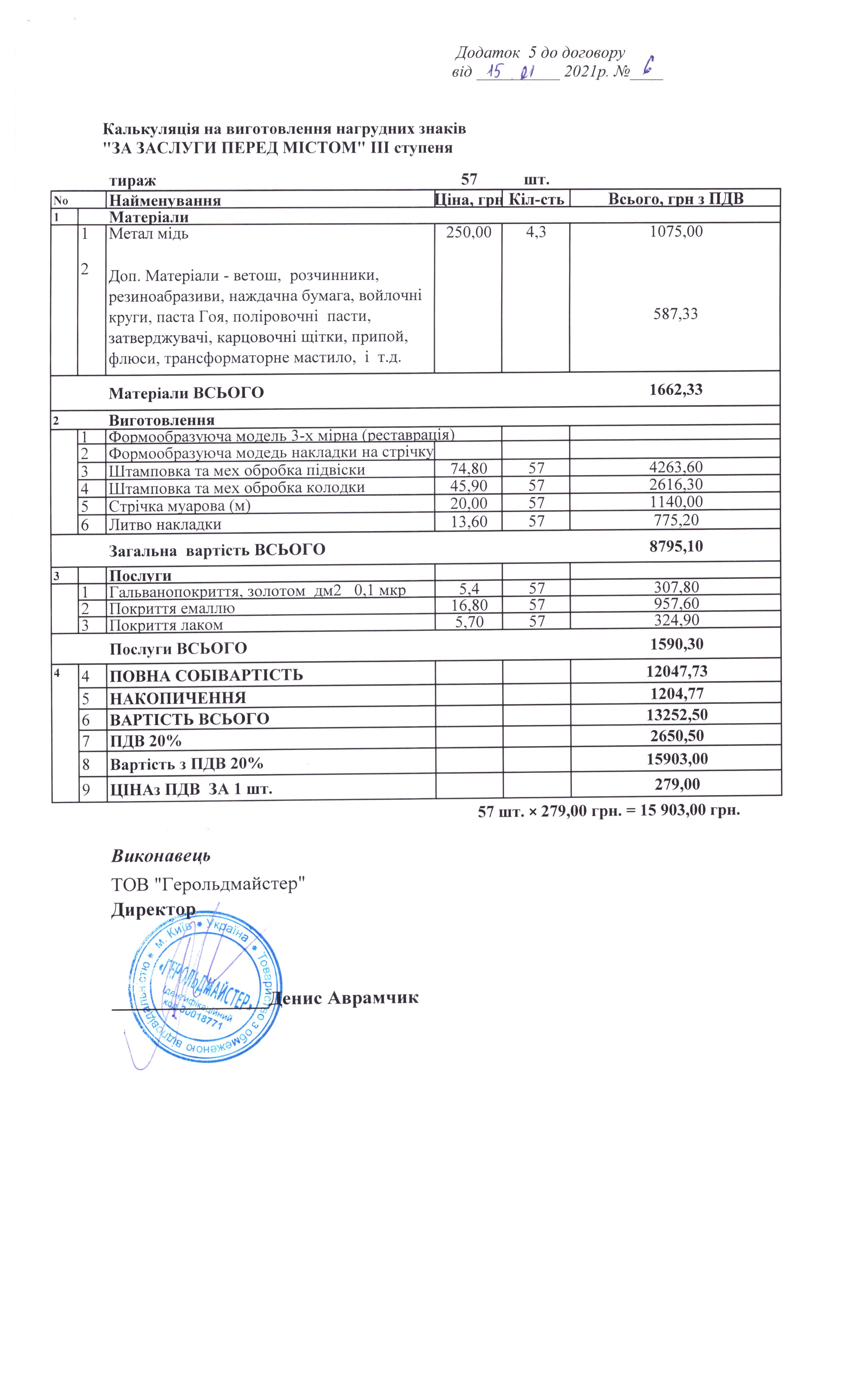 Додаток 5 до договору на виготовлення нагрудних знаків №6 від 15.01.2021